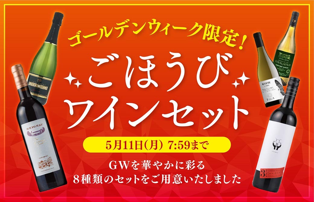 ゴールデンウィークはワインで乾杯!ご家族やお友達との集まりにはもちろん、日々頑張っている自分へのご褒美としてもお楽しみください!