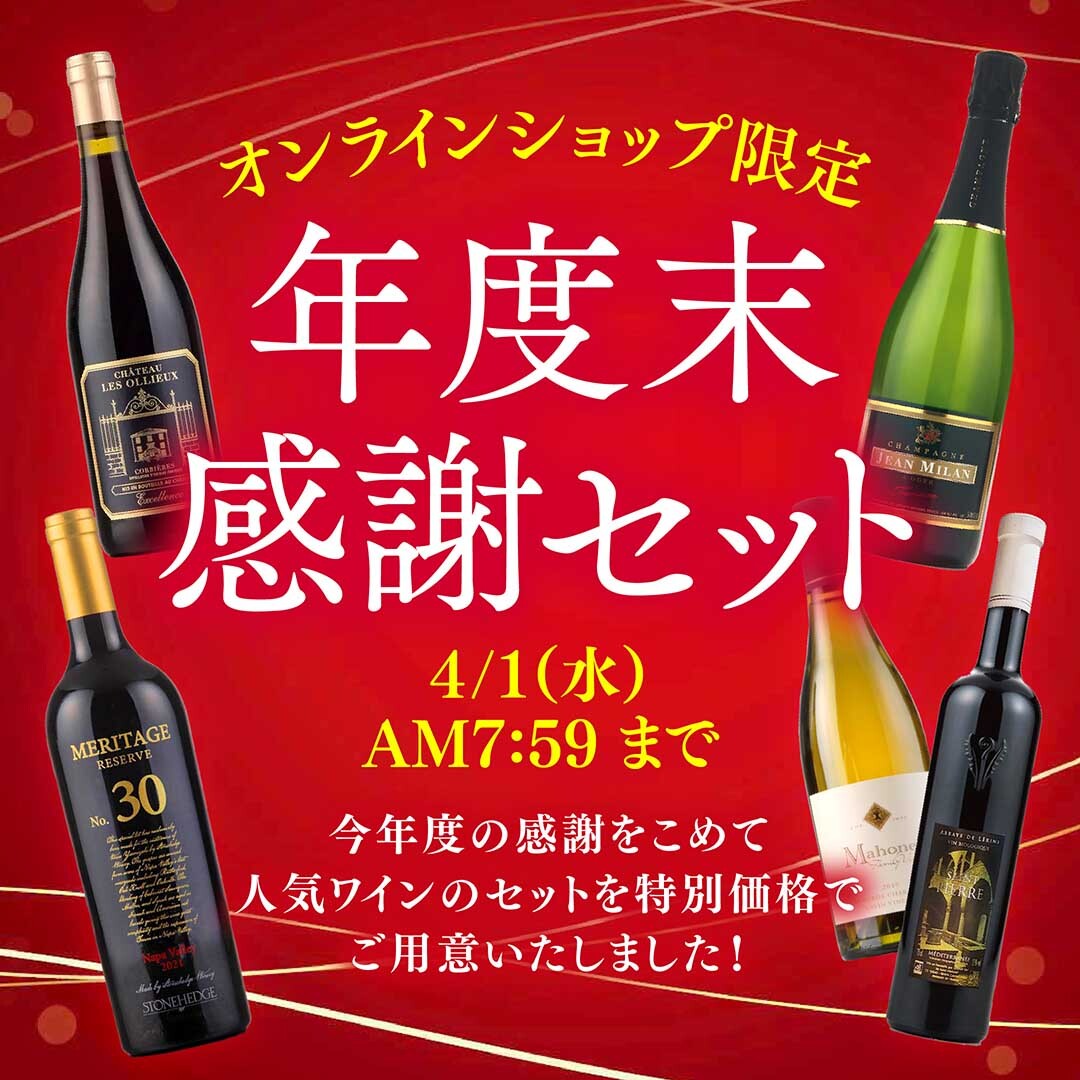 今年度のご愛顧に感謝を込めて…。オンラインショップをご利用いただいた感謝の気持ちをこめて、人気ワインのセットを「39(サンキュー)価格」でご用意しました!