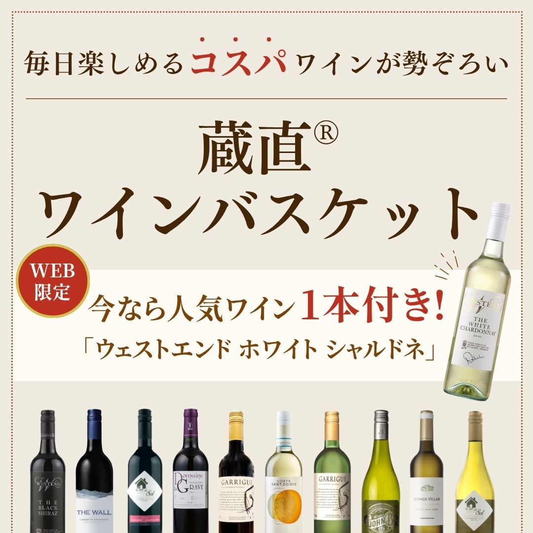 価格が【税抜10,000円以上】の10月限定ワインバスケットをご購入いただくと、今ならウェストエンド ホワイト シャルドネを1本プレゼント!