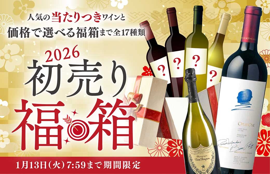 恒例の「オーパス・ワン」「ドン・ペリニョン」が当たる!?大当たり付きの運だめし福箱や、蔵元から特別に譲ってもらった希少ワインが入ったプレミアム福箱など、種類豊富に取り揃えております。