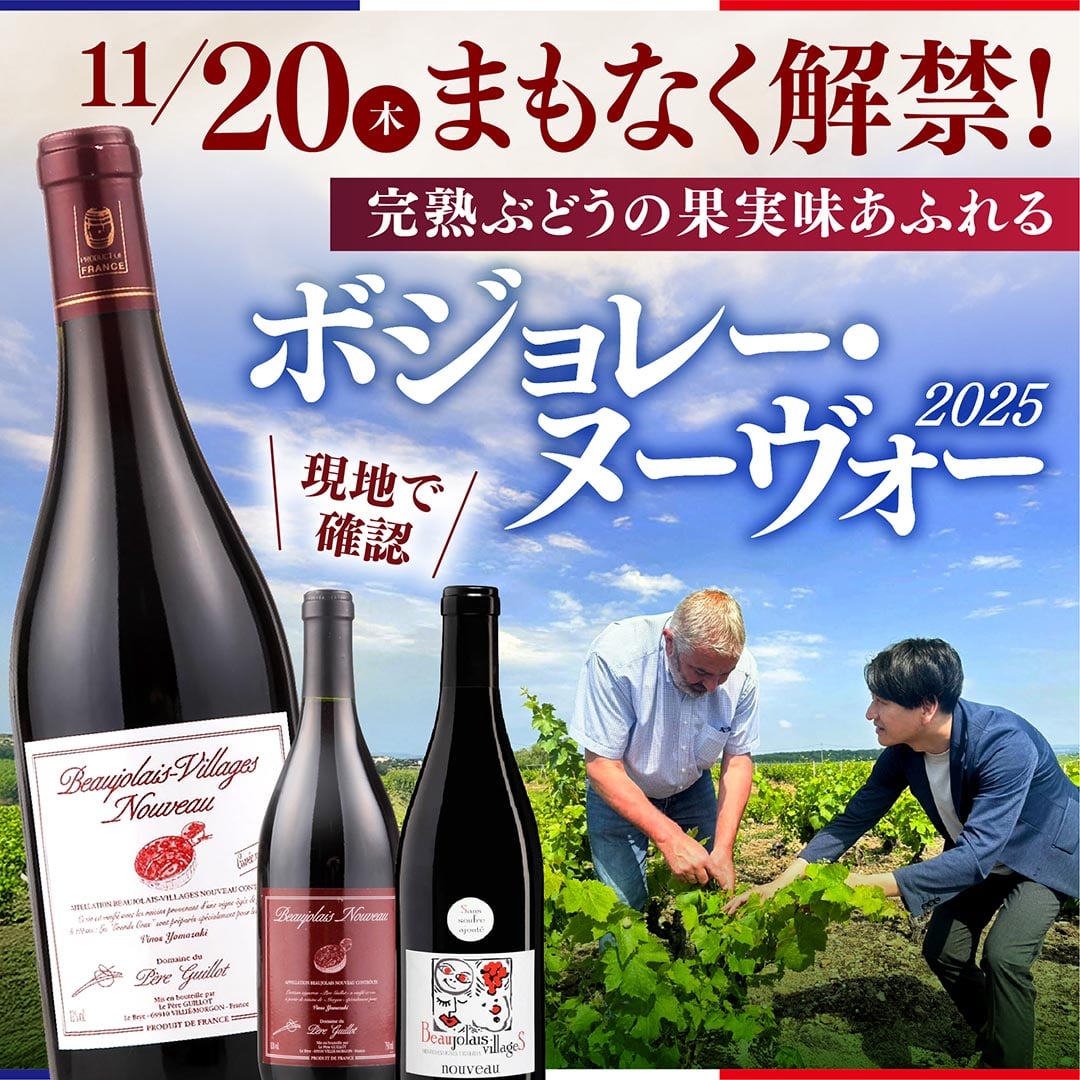 ヴィノスやまざきのボジョレー・ヌーヴォーは一味違います。スタッフが現地に足を運び、ブドウの育成具合を厳しくチェック。果実味たっぷりのブドウを収穫し、濃厚な味わいのヌーヴォーをお届けしています。