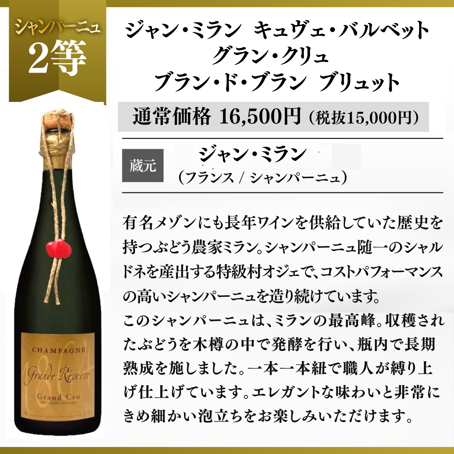 ※ナパ・ヴァレーくじでは通常価格14,080円(税込)以上、シャンパーニュくじでは通常価格11,000円(税込)以上のワインは必ず入っています。