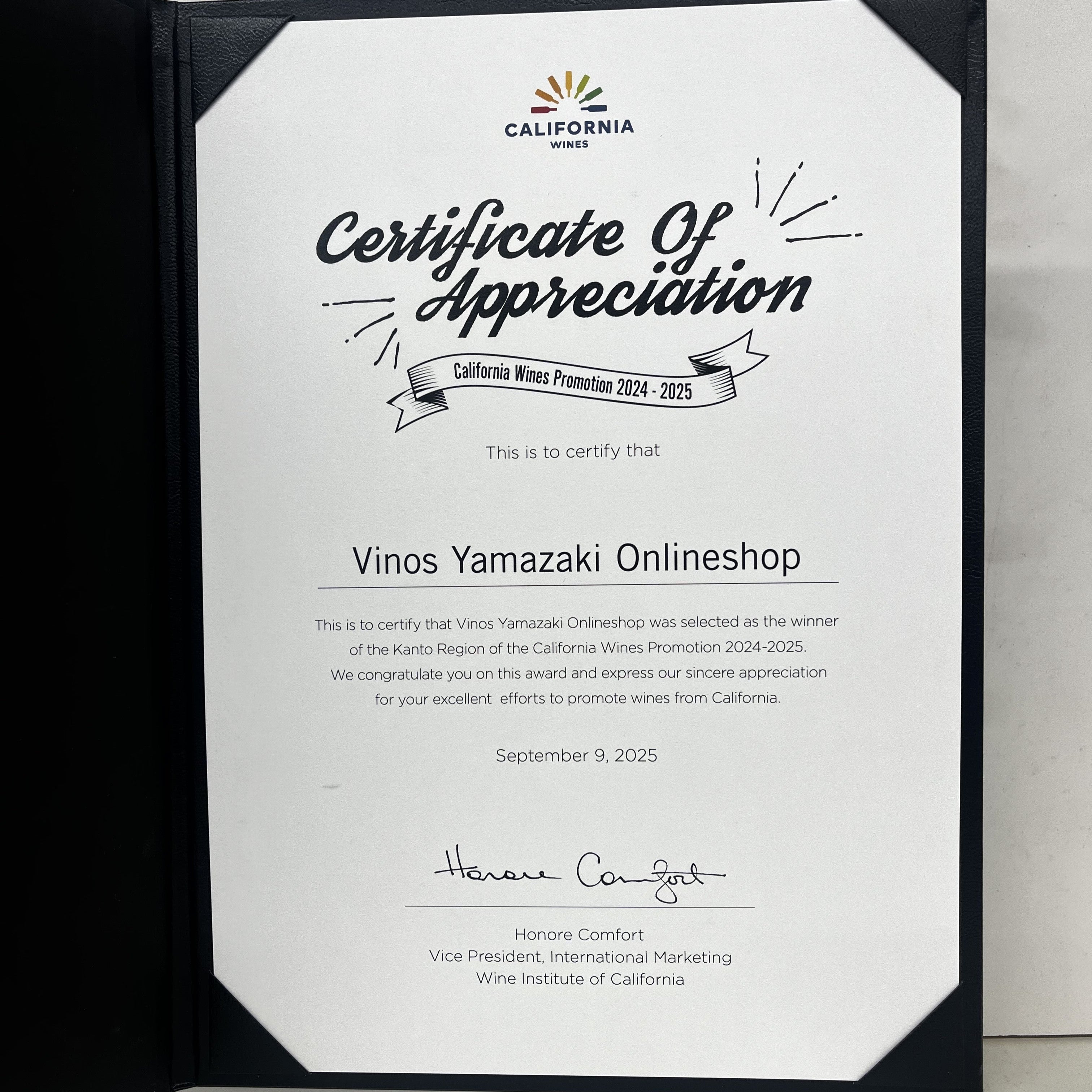 カリフォルニアワイン協会が主催する「カリフォルニアワインプロモーション2025」(※)において「ヴィノスやまざきWEBSHOP」が関東の優秀店に選ばれました!
