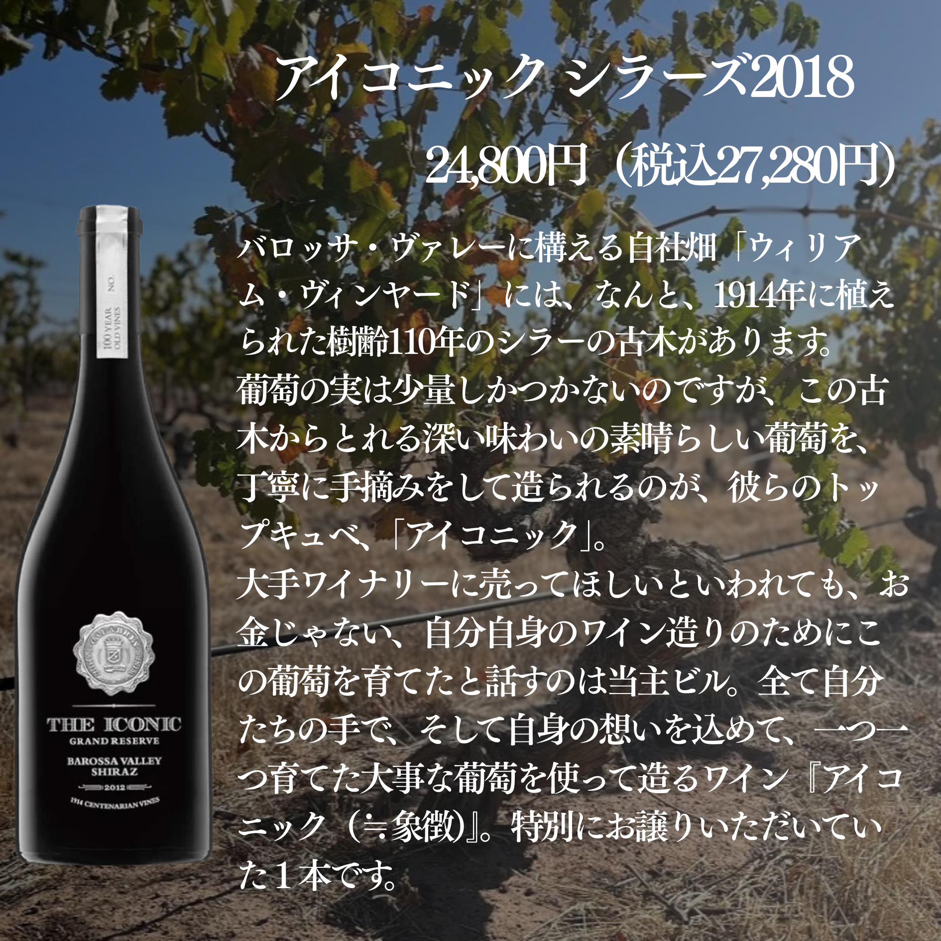 濃縮した黒い果実、ココア、スパイス、タバコなど樽由来の香りが感じられます。旨味に溢れ、余韻も長いのが特徴です。評価誌でも高得点を獲得する一本をどうぞお楽しみください。