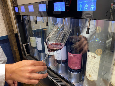 入口すぐ左手には、ヴィノスやまざき初導入の<ワインサーバー>がございます。