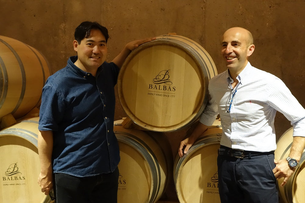 ボデガス・バルバスのこだわり品質を保つ樽と、オーナーと一緒に