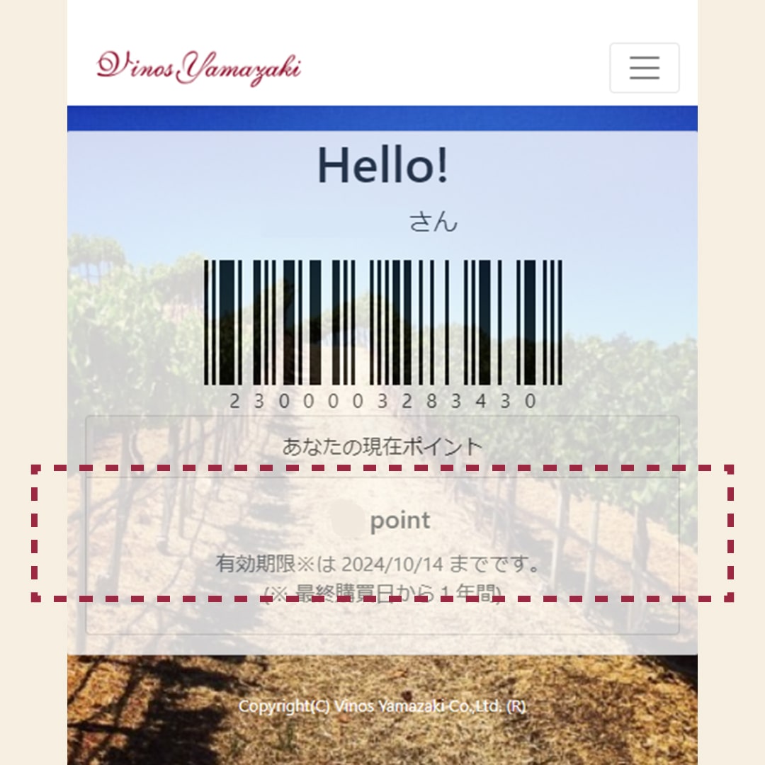 ヴィノスポイントクラブ マイページの表示はこちらのボタンよりログインをすることで表示できます。 マイページの表示はこちら