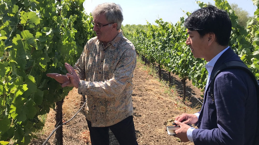 現在は、ぶどうの栽培に専念するマホニーさん。彼が育てたぶどうから、長年数万円以上の超有名ワインの醸造を手掛けていた醸造家のケン・フォスター氏がワイン造りを行っています。上品でまろやかな味わいのワインを造りだす、ヴィノスやまざきでも15年以上のロングセラー蔵元です。